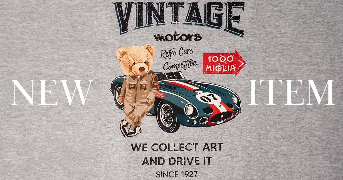 イタリアで開催されている世界屈指のラリーイベント、"ミッレミリア"のオフィシャルライセンス商品が複数入荷してきました。今回は新作のスウェットが登場しております。人気のテディのグラフィックが魅力的な1着です。