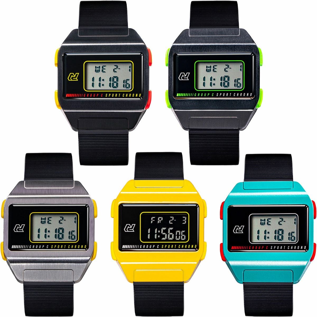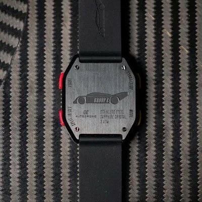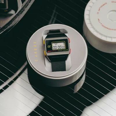 技術の進歩により、アナログからデジタルに進化した1980年代。電化製品に限らず、レーシングカーにもそのデジタル技術が盛り込まれるようになりました。グループCカー独特の直線的なデザインや、車番別に色分けされた蛍光色のミラーをプッシュボタンや見切り版に再現。時刻と日付表示のほかに、バックライトやアラーム機能を搭載。モータースポーツのカルチャーに、スタイリッシュなデザインとファッション性を兼ね備えたモデルに仕上げられています。