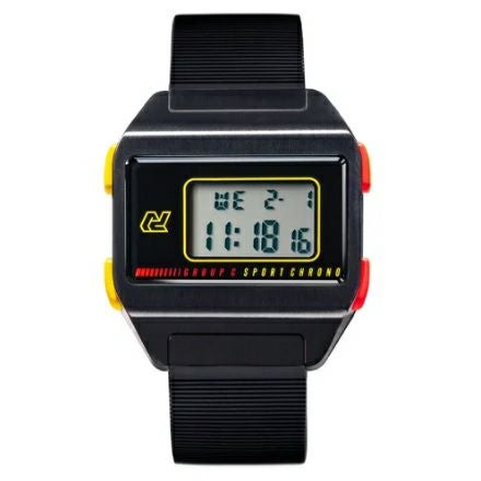 1980年代に流行したデジタルウォッチと、同じ時代を共に歩んだグループCカーのエッセンスを盛り込んだスポーツクロノグラフ。