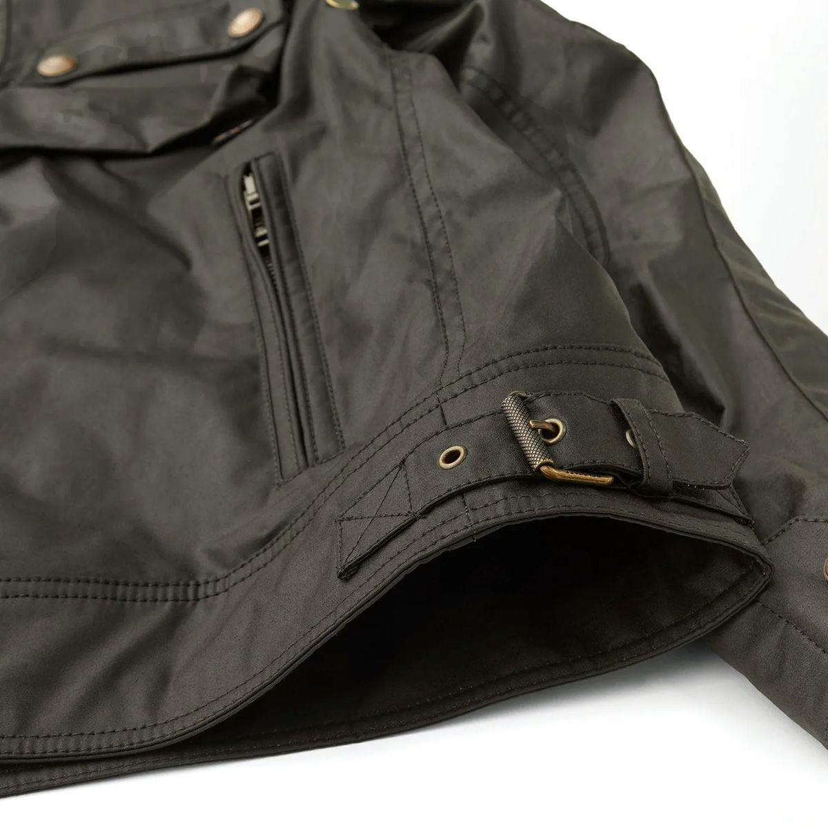 歴史と伝統を継承しながらも、6オンスのワックスドコットンを使用することで、優れた耐候性を持ちながら、より自由で軽快な着心地を実現しています。