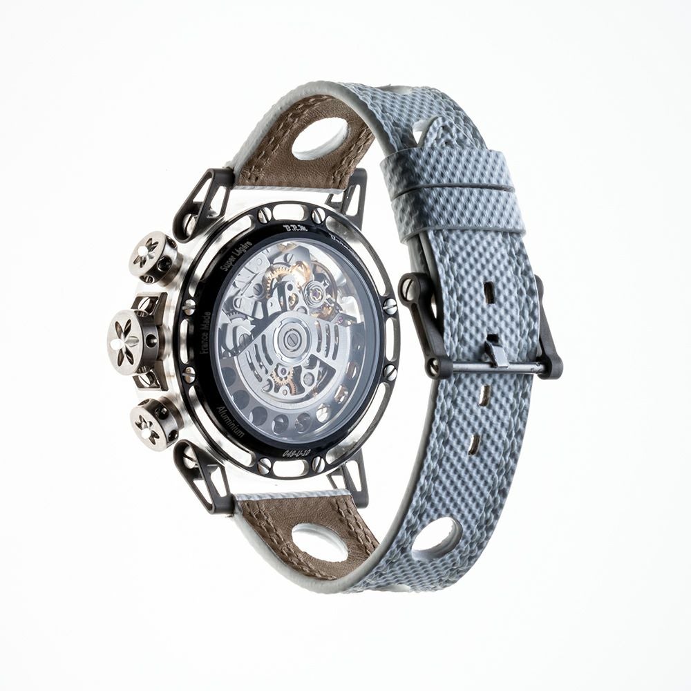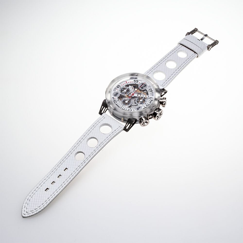 F1のエンジニアがレーシングカーを1ミリ単位で設計するように、この時計のすべての部品は100分の1グラム単位で製造し、マイクロメートルの精度でひとつひとつ計量されています。MK-44ではあらゆるパーツを軽量化しました。ケースには自動車レースで使用される強靭で軽量な素材、マクロロン®を採用しました。