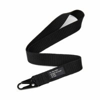 様々な用途に対応できるカラビナ付きのストラップ。