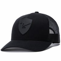 フロントパネルにブランドアイコンであるウルフのエンブレムが付いたトラッカーキャップ です。