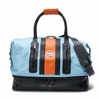 鮮やかなガルフブルーが特徴的なガルフのオフィシャルレザースポーツバッグ。