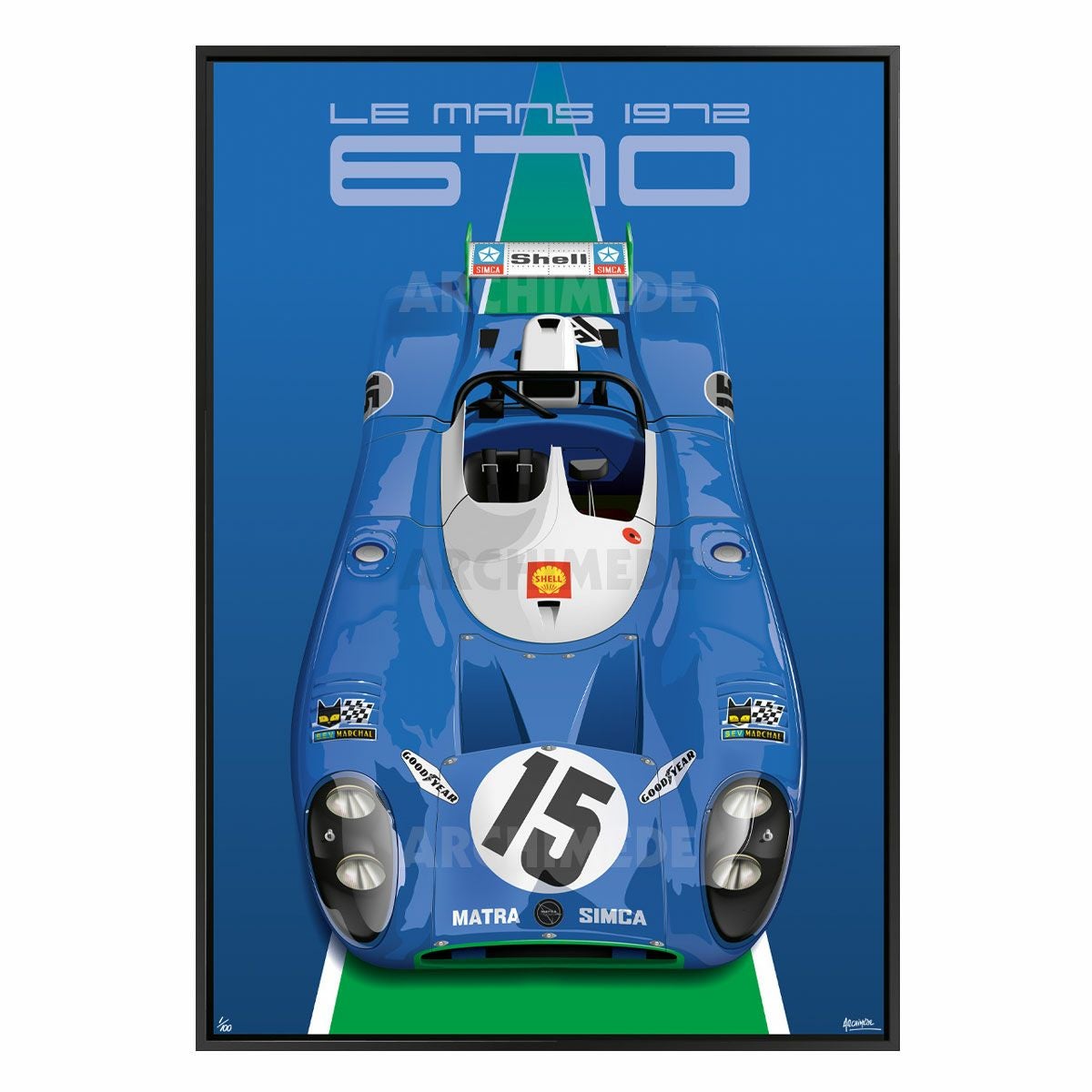 フランス「CAR & NOIR」コレクションによる、1972年のル・マン24時間レースを制した、マトラMS670の額装パネル。