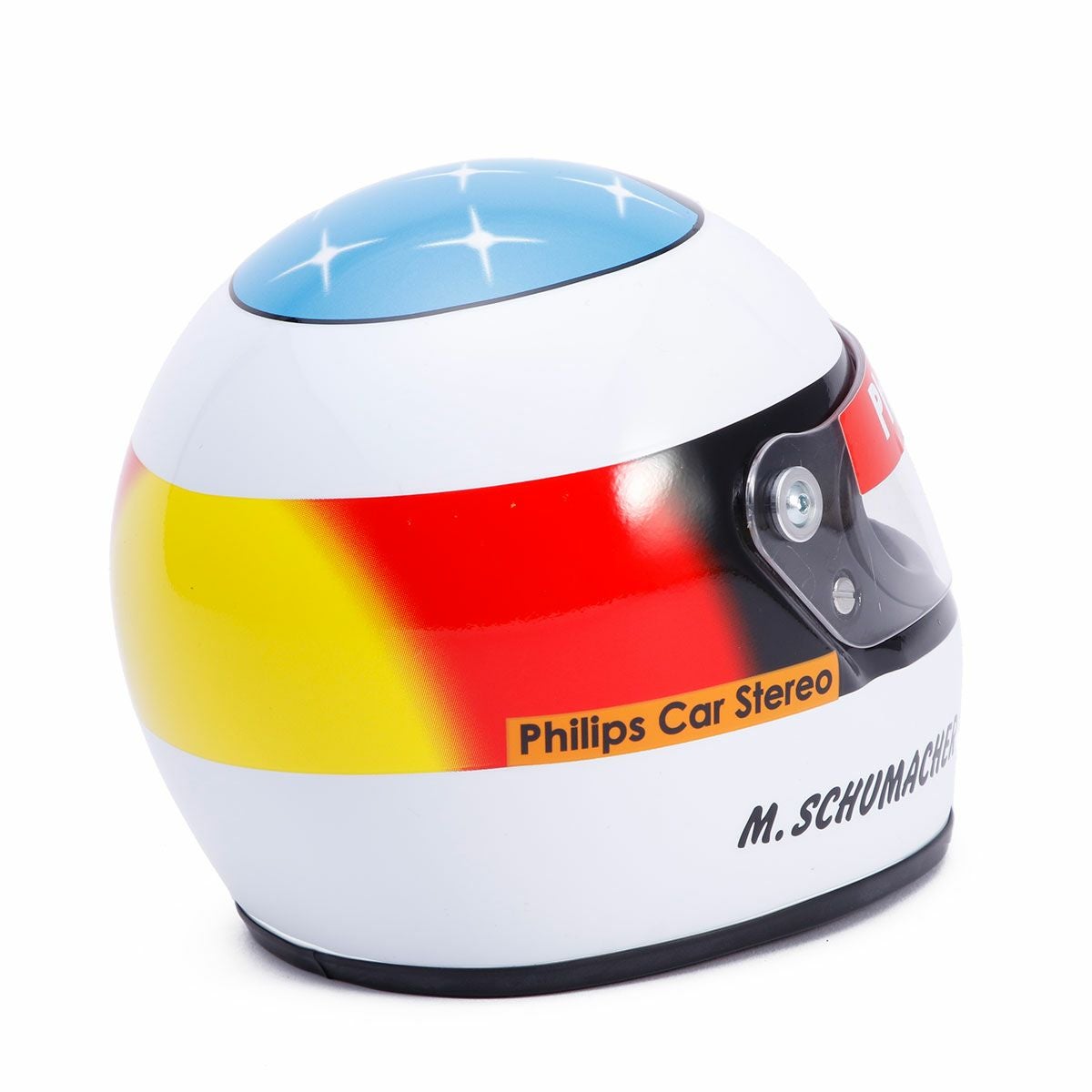 ミハエル・シューマッハがジョーダンからF1デビューを飾ったベルギーGP仕様の1/2サイズヘルメット。