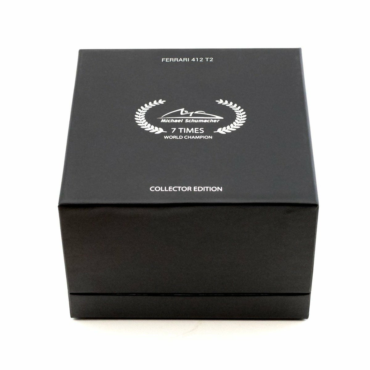 ミハエル・シューマッハがフィオラーノのテストコースで最初にフェラーリをドライブしたフェラーリ 412T2の1/43モデルカー。 7 Times ワールドチャンピオンシリーズとなるコレクションエディション専用の黒い化粧箱つきとなります。