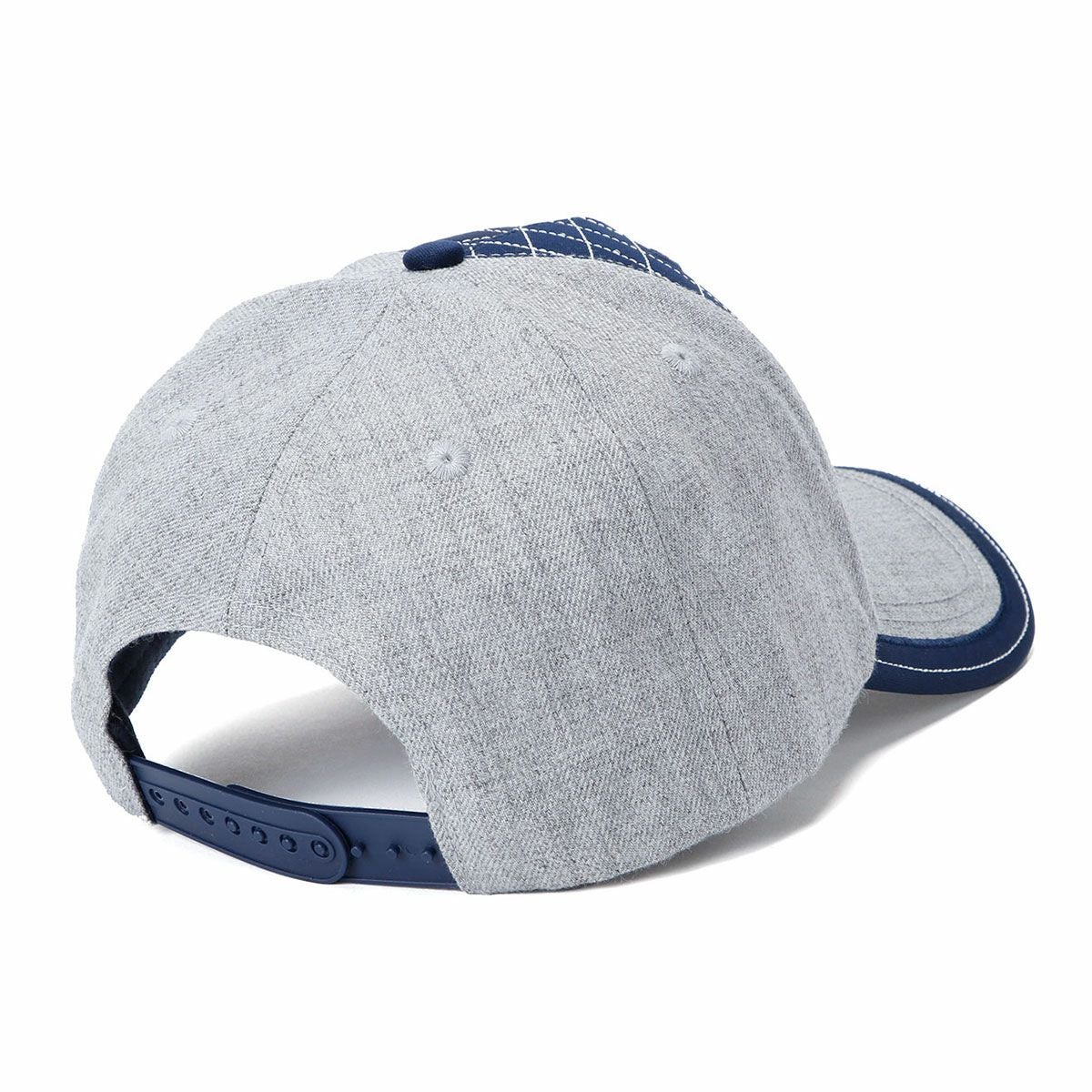 グレー部分は麻のような素材と、レーシングスーツを彷彿とさせるひし形のステッチの組み合わせが独特なベースボールキャップです。