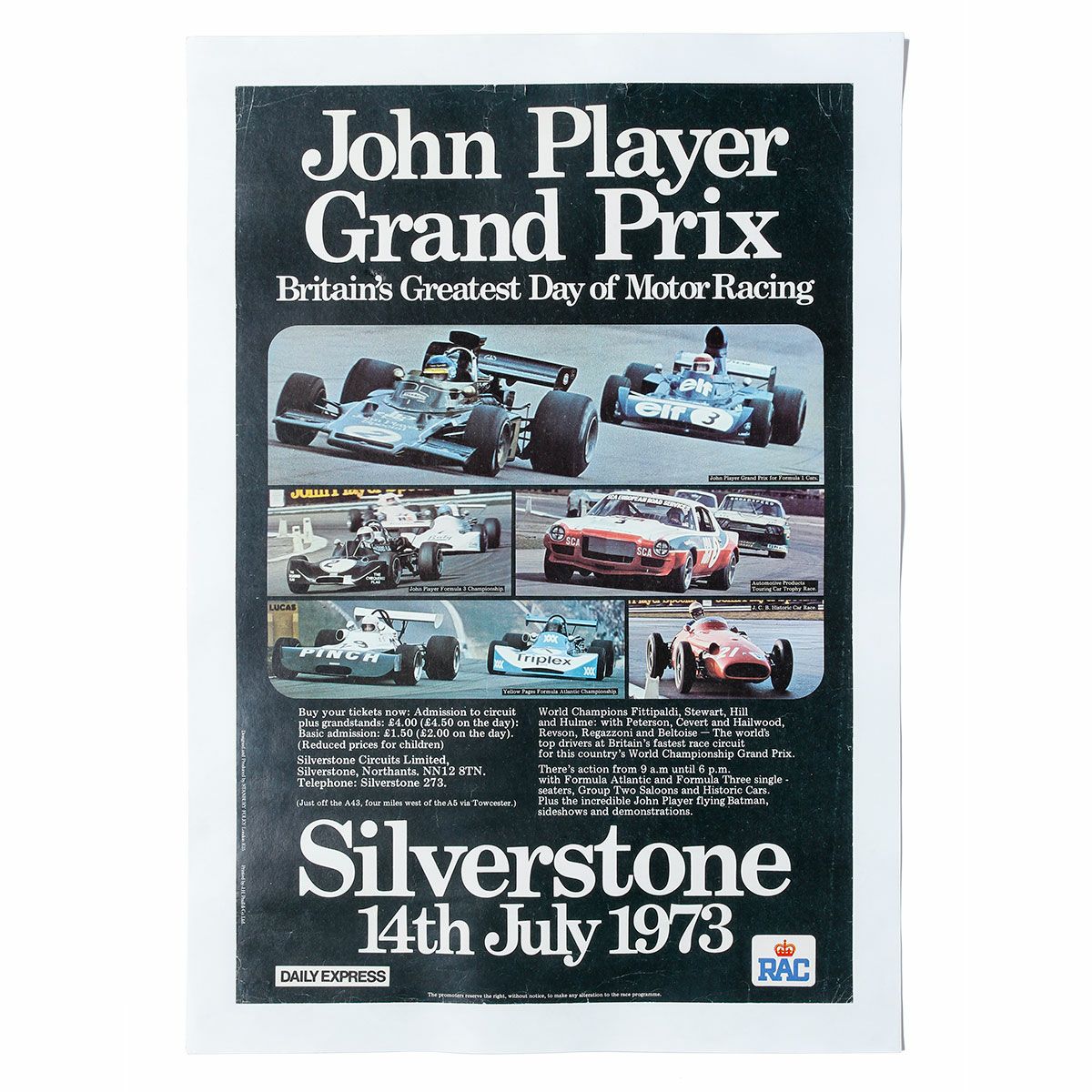 5. 1973 F1 イギリスGP ジョン プレイヤー グランプリ 大会オフィシャル ヴィンテージポスター