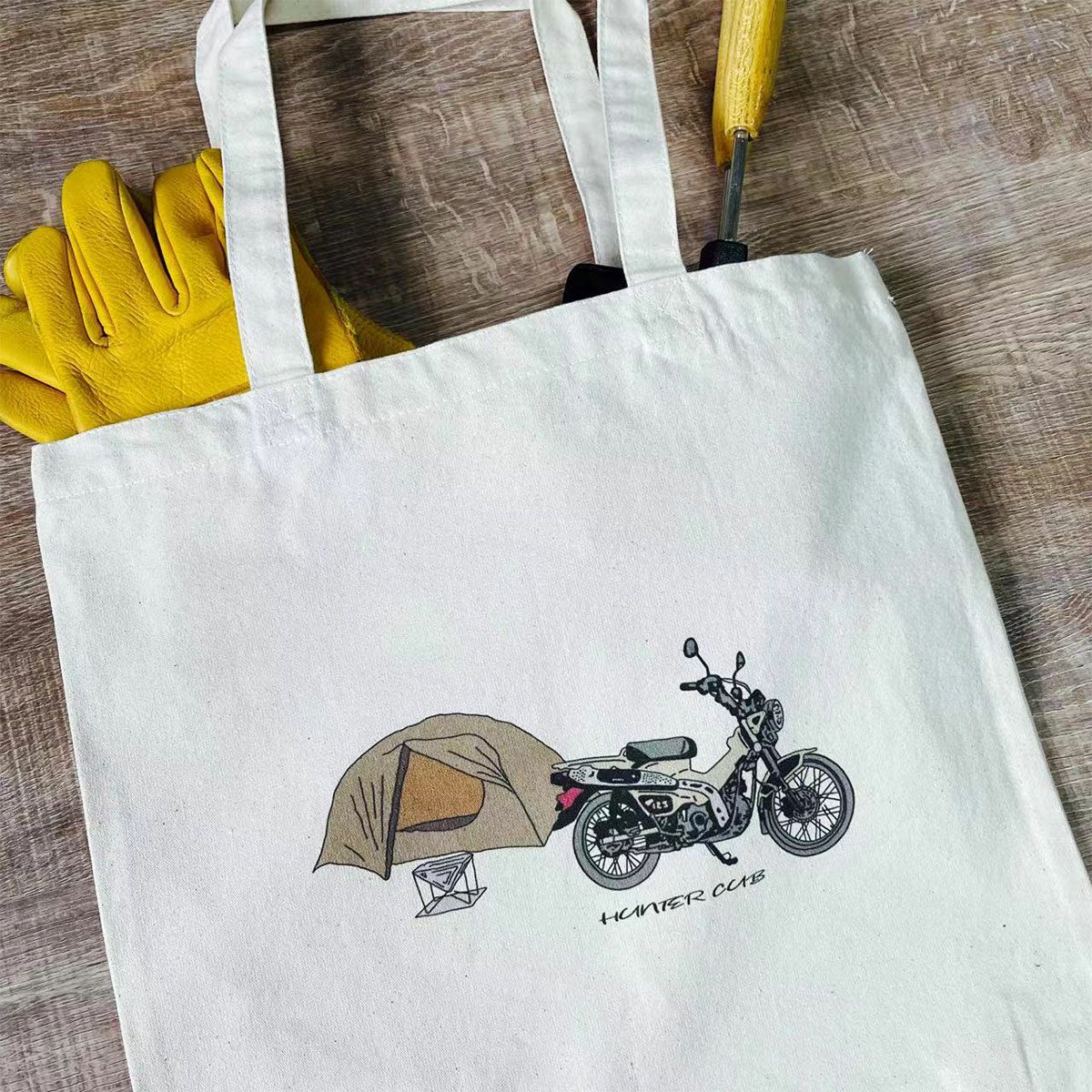 ハンターカブがプリントされたトートバッグです。