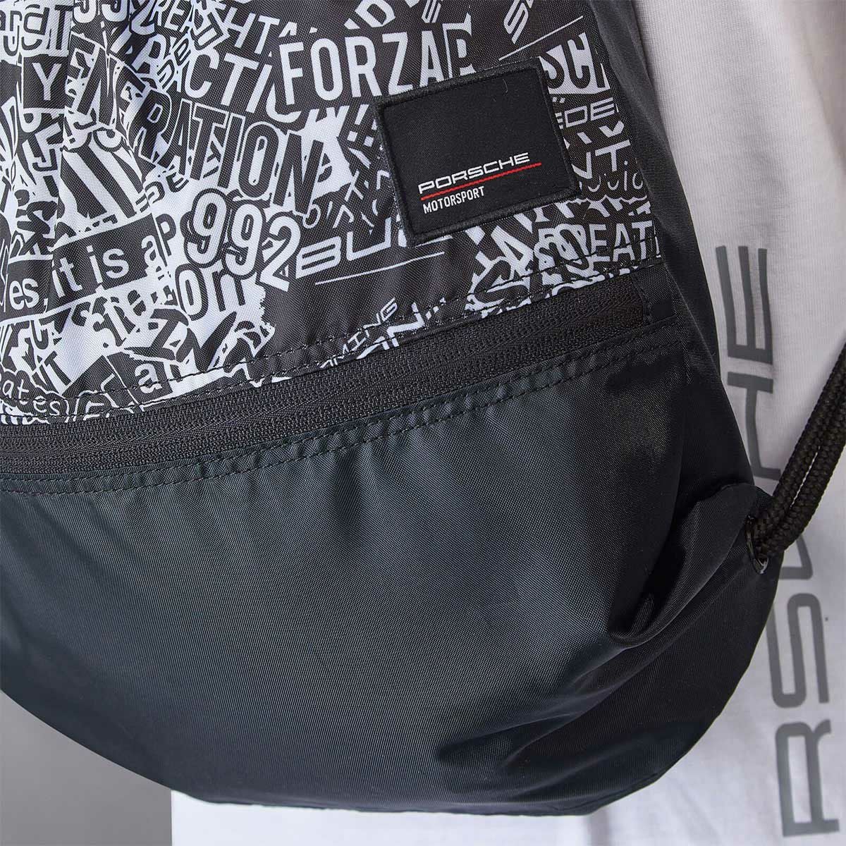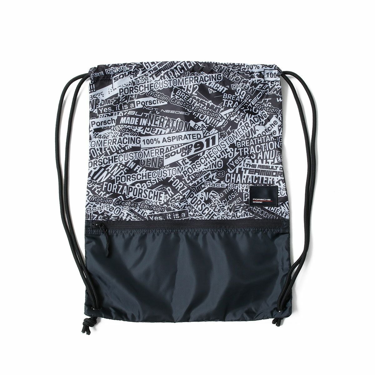 ポルシェにまつわるフレーズがモノトーンで散りばめられたユニークなデザインに仕上がっています。