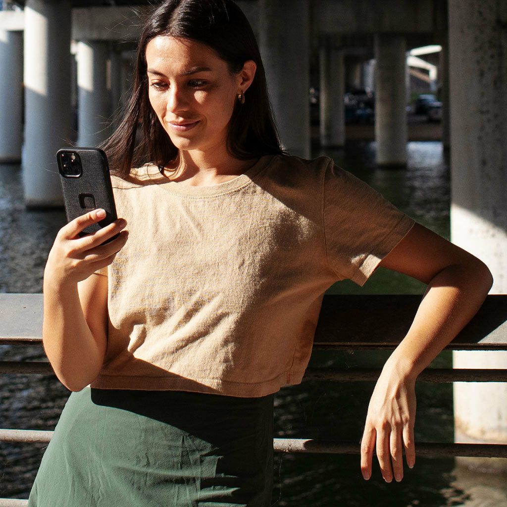 2.4mm厚と非常に薄く洗練されたデザインでありながら、操作性、保護性、装着感のすべてを兼ね備えたスマートフォンケースです。ケース背面にピークデザイン独自のSlimLink™システムを備え、スマートフォンをさらに便利に活用できるアクセサリー類を取り付けられます。
