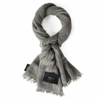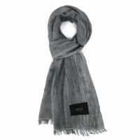 独特なフェード感のある、柔らかなウール混紡糸を使用したスカーフです。ミニフリンジのディテールと、裾に施されたロゴラベルがポイントになっています。