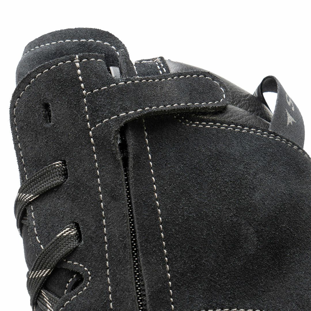 撥水性のあるスエードレザーとフルグレインレザーを組み合わせ、雨や泥からライダーを保護します。