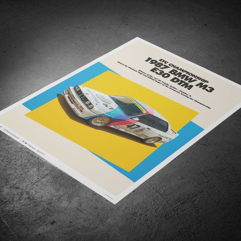 1987年ETC(ヨーロッパ・ツーリングカー・選手権)のチャンピオンを獲得した、BMW M3のグラフィカルポスター。