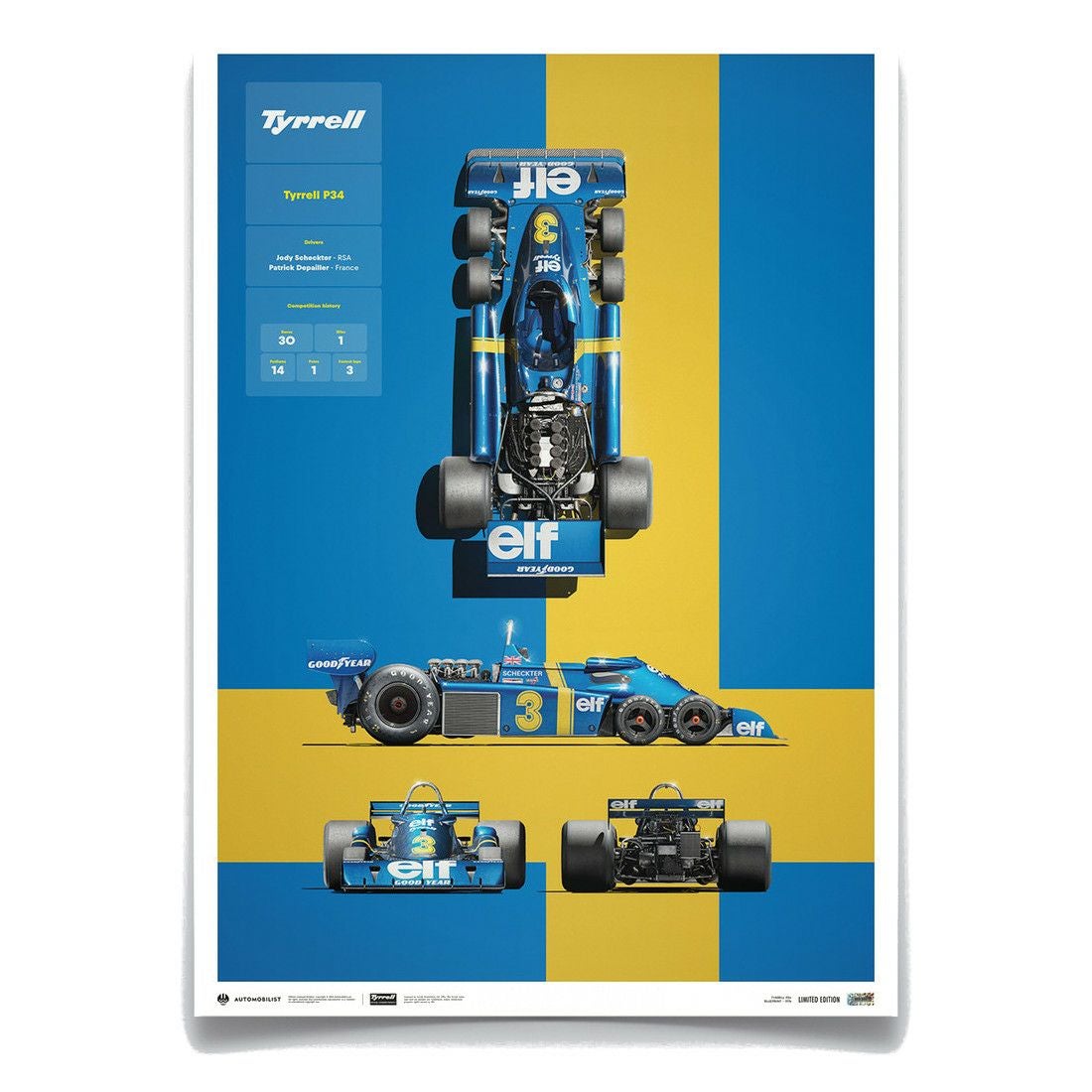 Automobilist TYRRELL P34 BLUEPRINT 1976 リミテッド エディション ポスター