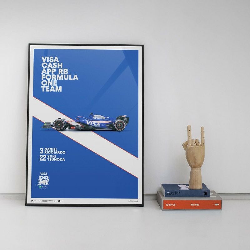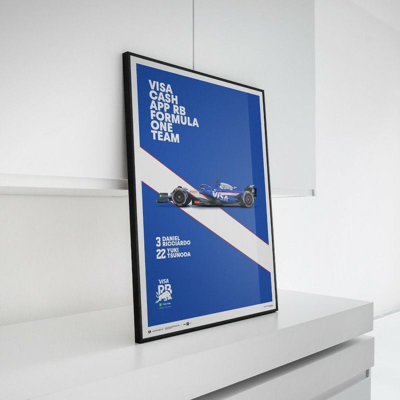 2024年シーズンをF1で戦う、VISA CASH APP RB F1 チームのVCARB 01のマシンを描いたグラフィカルポスター。