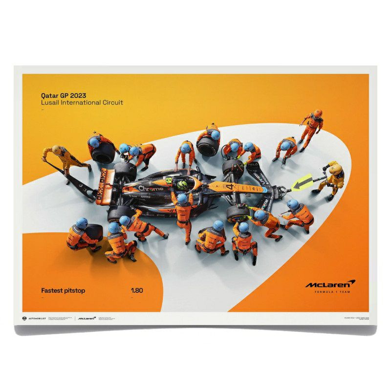 2023年のカタールGPにおいて、ランド・ノリスのピット作業が1.80秒というF1史上最速記録を更新したことを記念して製作されたグラフィカルポスター。