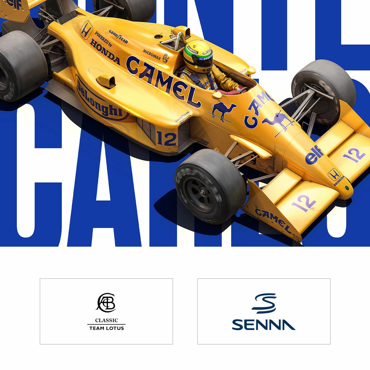 アイルトン・セナが初のモナコマイスターとなった、1987年モナコGPをイメージ。当時のキャメルカラーをイメージした色使いと、モナコ市街地コースの名物コーナー、ロウズヘアピンへ進入していくと思われるセナの様子が描かれています。