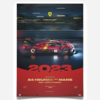 2023年のル・マン24時間レースを制した、フェラーリAFコルセチームのフェラーリ 499P(51号車)を描いたグラフィカルポスター。