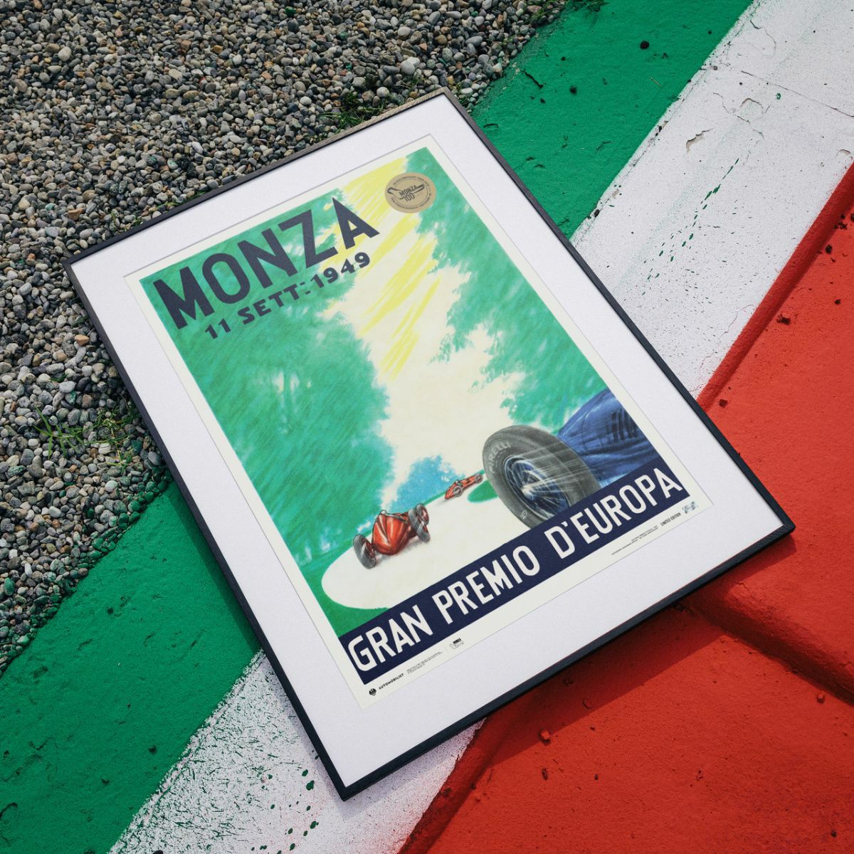 翌1950年から正式に世界グランプリとして開催されることになる、Formula 1世界選手権前の最後となったこのレース。Automobilistの手によって、1949年当時の公式オフィシャルポスターを現代版にリメイクされたデザインとなっております。