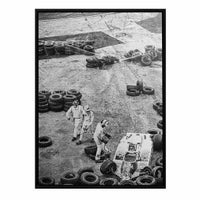 1972年から1984年にかけて、F1のドキュメンタリーをカメラに収め続けてきたリチャード・ケリー氏が、 1982年F1アメリカ東グランプリ決勝前のウォームアップセッションにおいて、リカルド・パレッティがドライブするオゼッラ FA1Cの右リアタイヤが外れ、パレッティはコントロールを失ったまま、タイヤバリアへ激突。マーシャルと共にタイヤバリアの外へ避難するパレッティの姿や、マシンの破片を片付けるマーシャル、タイヤバリアへそのままクラッシュしたタイヤ痕が写真から確認できます。幸い、マシンから炎が出ることはありませんでしたが、パレッティはこのクラッシュの影響により決勝への出場を断念せざるを得ない状況となりました。また彼の災難はここで終わることなく、次戦運命のカナダGPを迎えることになってしまうとは、この時誰も想像できなかったはず。そんな災難続きだったパレッティの勇姿をキャンバスプリントへ落とし込みました。 キャンバスの外枠はウッドフレームで囲っている為、そのまま壁にかけて飾ることが可能です。