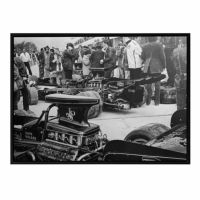 1972年から1984年にかけて、F1のドキュメンタリーをカメラに収め続けてきたリチャード・ケリー氏が、 1972年にワトキンス・グレンにて開催されたアメリカGPのピットレーンに並ぶロータス72Dの3台を映し出した1枚。手前からデイブ・ウォーカー、レイネ・ウィセル、エマーソン・フィッティパルディの3台をピットクルーやチーム関係者たちがマシンを囲んでいる光景をキャンバスプリントへ落とし込みました。キャンバスの外枠はウッドフレームで囲っている為、そのまま壁にかけて飾ることが可能です。