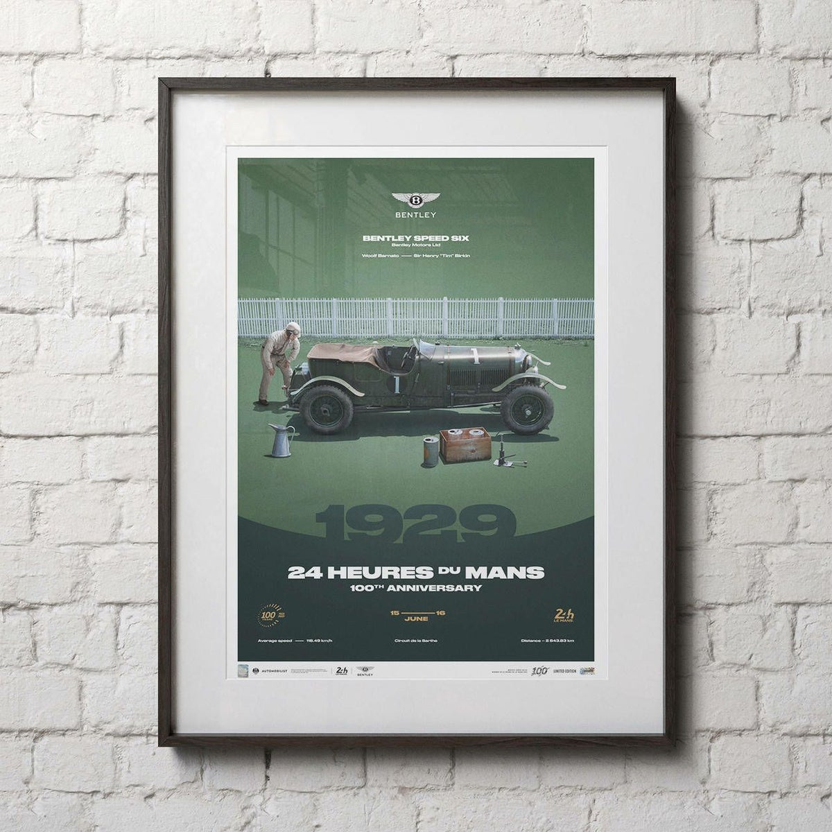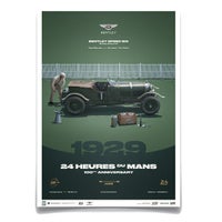 1927年の開催から4連覇を果たしたベントレーが最も好成績を収めた1929年。この年、新型となるスピードシックスを5台投入したベントレー陣営は、レースで1位から4位を独占。ポスターには総合優勝を果たしたスピードシックス(1号車)に、自らステアリングを握り勝利を収めた、ベントレーの会長(当時)ウルフ・バーナートらしき姿が描かれています。ベントレー史上、最も活躍したレーシング・ベントレーとして語り継がれているスピードシックスは、歴史に残る名車の1台です。
