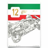 ニキ・ラウダが1975年にF1ワールドチャンピオンを獲得した、フェラーリ312Tの透視図がプリントされたポスター。