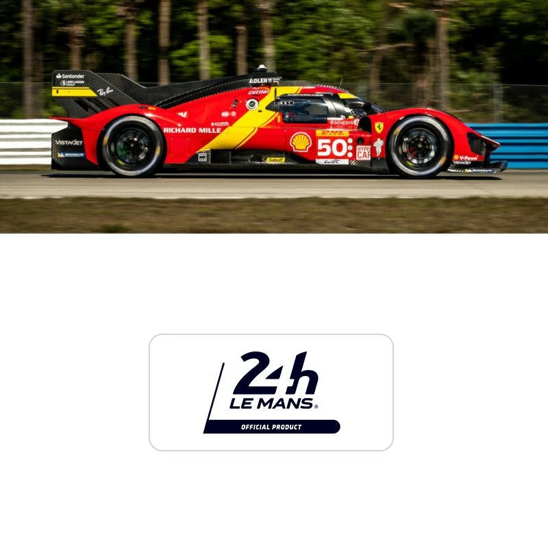 記念すべき2023年のハイパーカークラスにエントリーした、フェラーリAFコルセチームのフェラーリ 499S(50号車)を描いたグラフィカルポスター。予選でアタッカーを務めたアントニオ・フォコが3分22秒982の驚速タイムを記録し、ポールポジションを獲得。レースでも接近戦バトルを繰り広げ、途中ピットで修復作業を受けるも、7位でチェッカーを受けました。