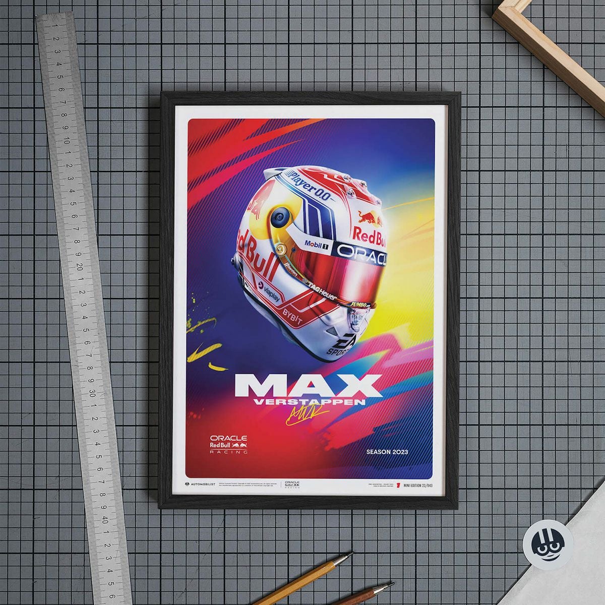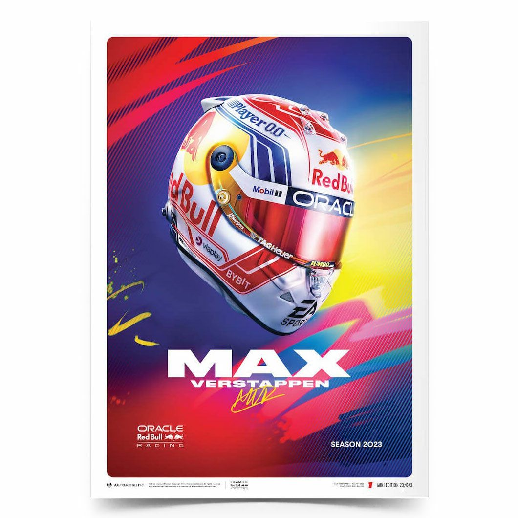 Automobilist オラクル レッドブル レーシング チーム マックス・フェルスタッペン ヘルメット 2023 ミニ エディション ポスター