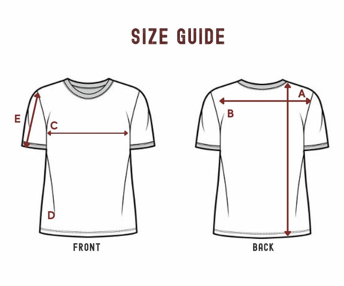 | A:着丈 | B:肩幅 | C:身幅 | D:裾幅 | E:袖丈 | |