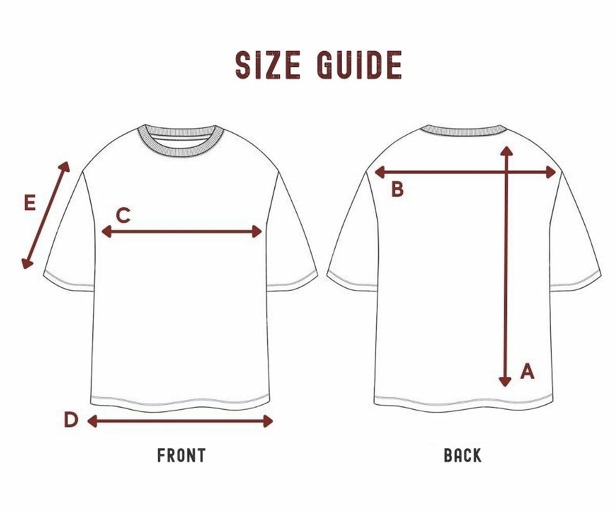 | A:着丈 | B:肩幅 | C:身幅 | D:裾幅 | E:袖丈 | |