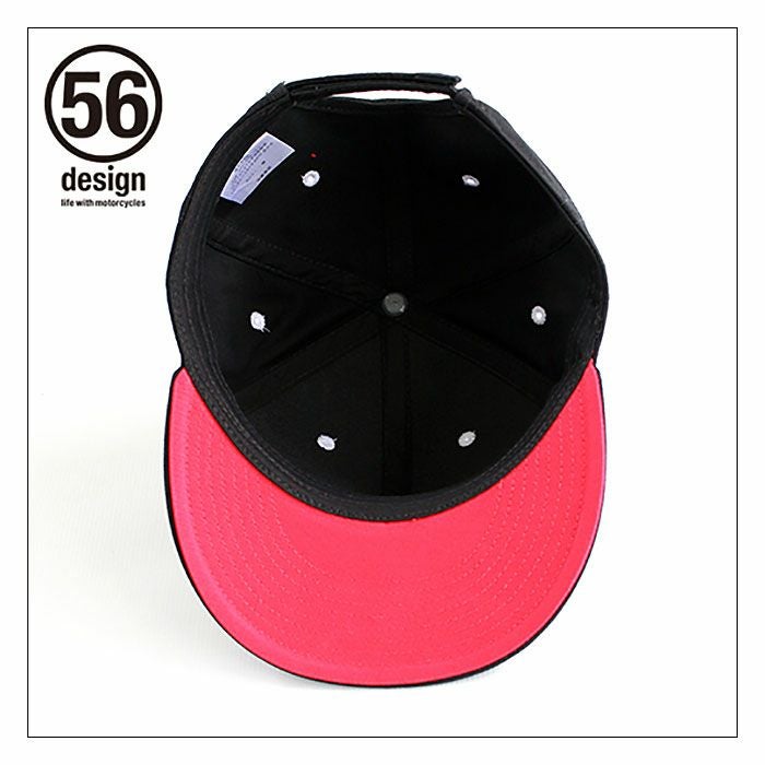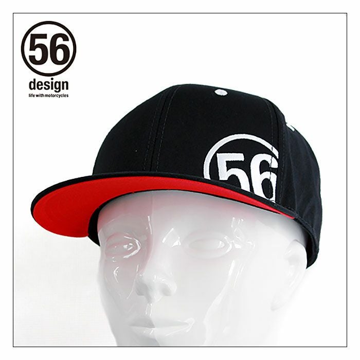 流行のフラットバイザーキャップ。正面には、56のサークルロゴを配し56DESIGN SPORTのロゴを背面のテープに刺繍しました。