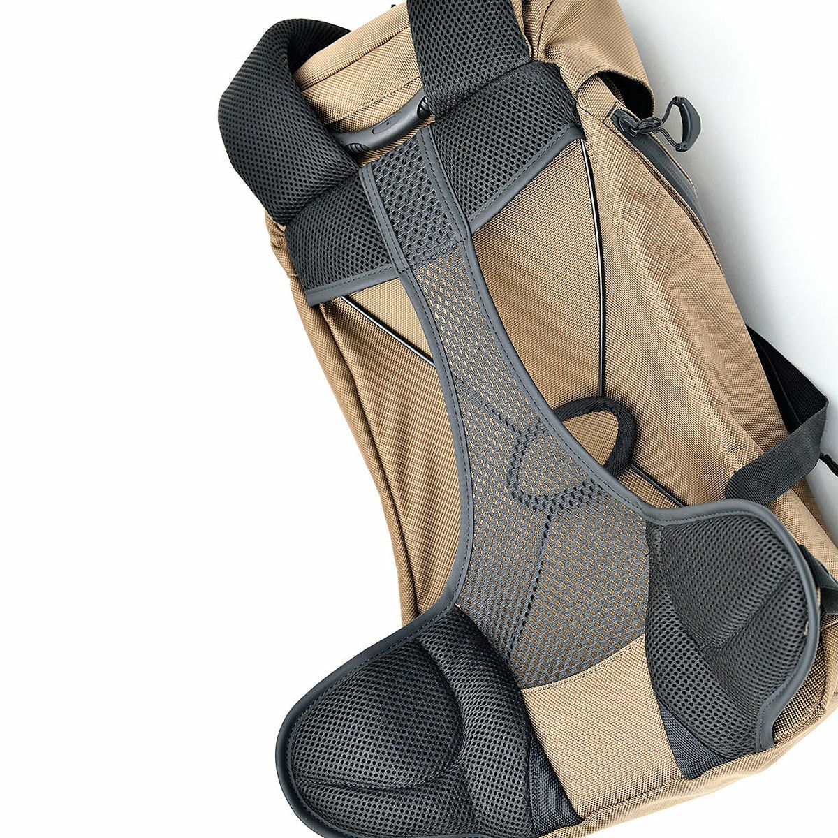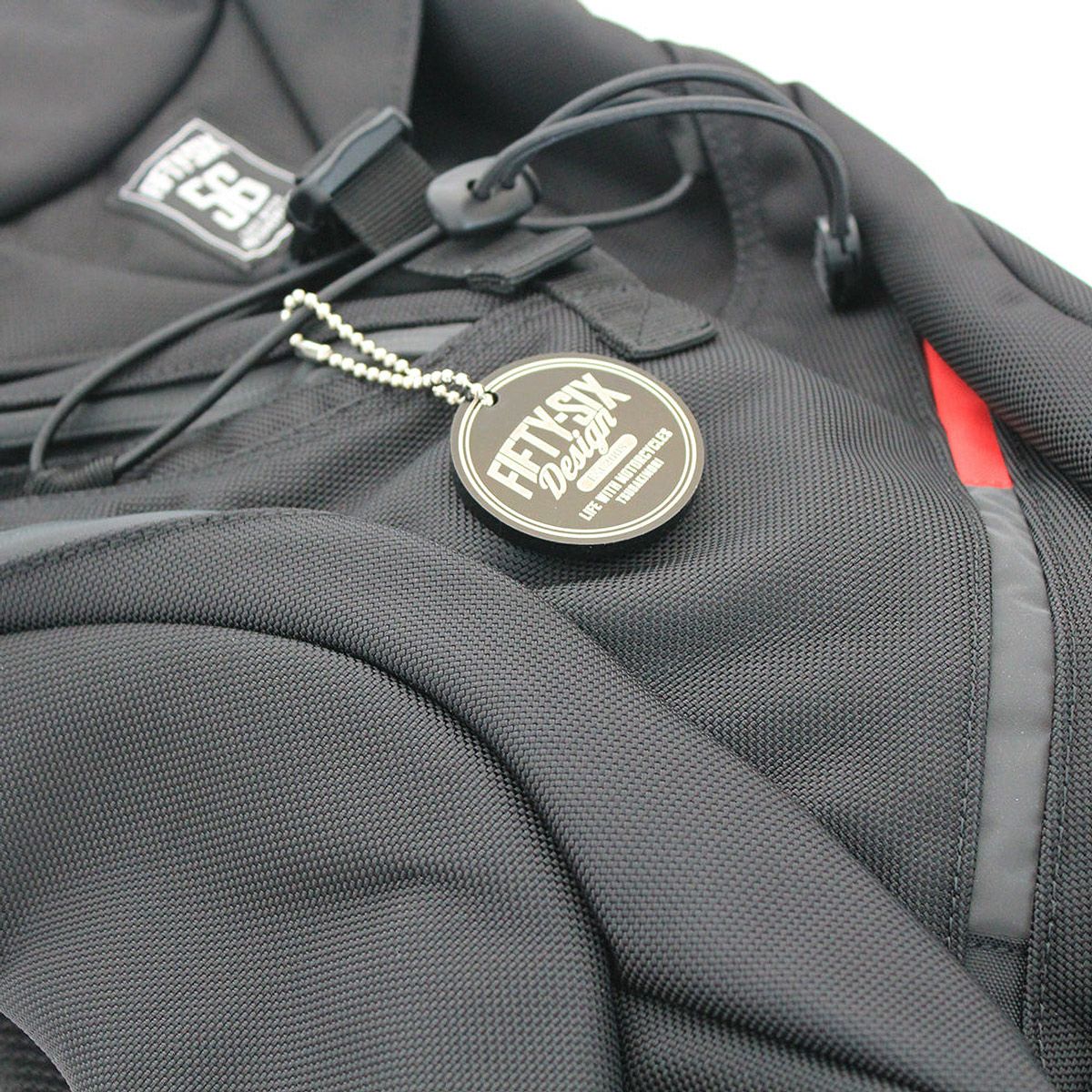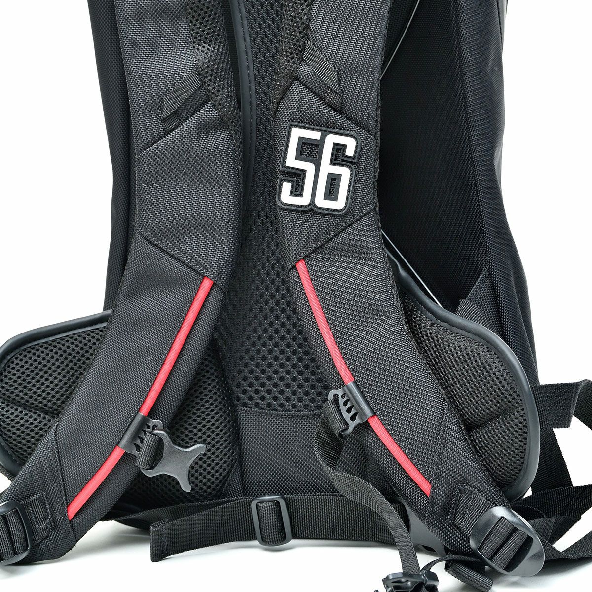 ショルダーベルトには56のラバーワッペンが縫い付けられており、2本のベルトでしっかり装着、胸のベルトはスライド式で位置の調整が可能です。
