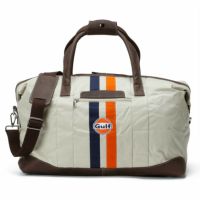 時代を超えたスタイルで旅を楽しむトラベルバッグ。コットン生地とブラウンのヴィンテージレザーを組み合わせたデザインです。コットン製のショルダーストラップ付きで、外側にはファスナー付きポケットが2つ、内側には旅に便利な小物などを整理できる複数の収納ポケットを備えています。