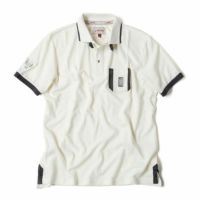 MASERATI CLASSICHE 1914 純正のポロシャツ。襟、袖口、ポケットの縁がシャツ本体のカラ‐とは別カラーにあしらわれており、後身頃のテールが前身頃よりも少し長めになっています。