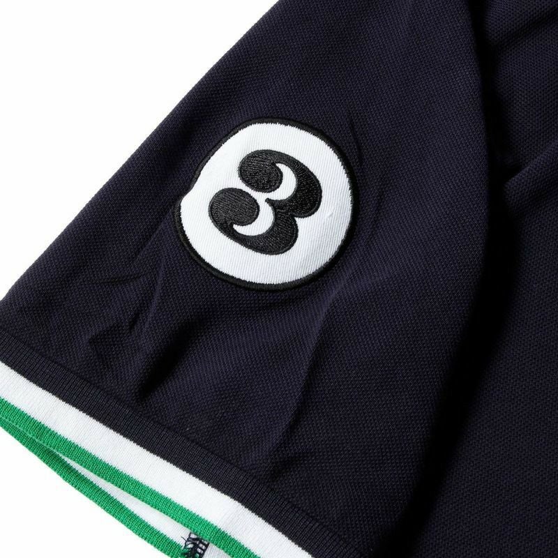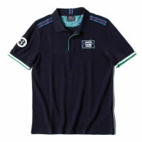 胸元にマルティニ・レーシング・ポルシェの刺繍ロゴが入ったポロシャツ。背中にはさりげなくポルシェのロゴがプリント。