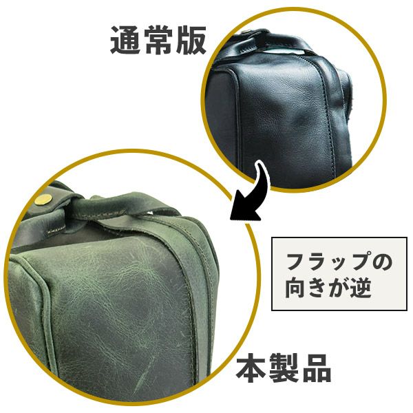 本製品は、フラップの向きが通常とは逆になっているレア仕様です。通常は外側から背中側に向けて取り付けられているフラップが、背中側から外側に向けて取り付けられています。いずれの仕様でも、使用上の問題はございません