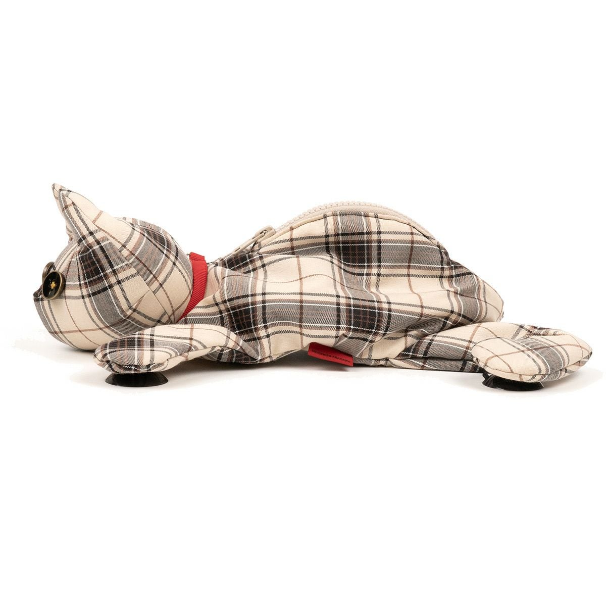 猫を形をしたタンクバッグです。 肉球部分に吸盤が付いており、しっかりとタンクにつかまります。 市販の猫(小型犬)用の服を着せることも可能。