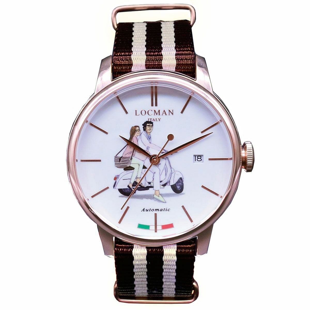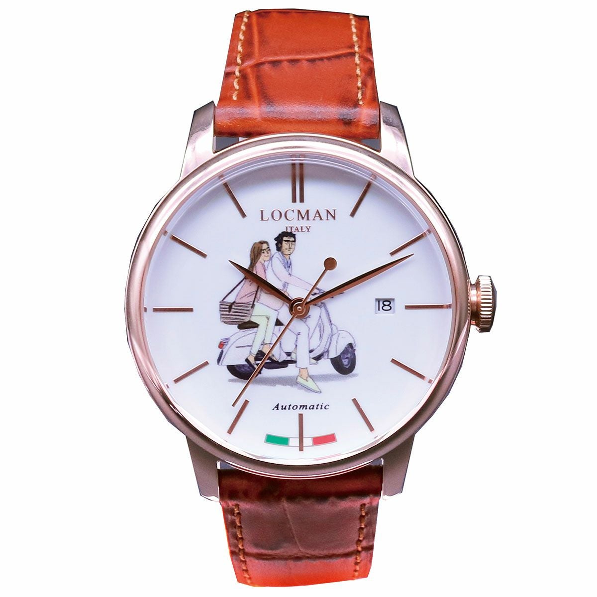 イタリアが最も輝いていた1960年代のデザインを彷彿とさせるLOCMANの人気コレクション”1960”(イチキューロクゼロ)コレクションから、オートマチックモデルのref.255をベースとし、遠山氏がオリジナルで描き下ろした『イタリアの甘い生活』がダイヤルを彩ります。