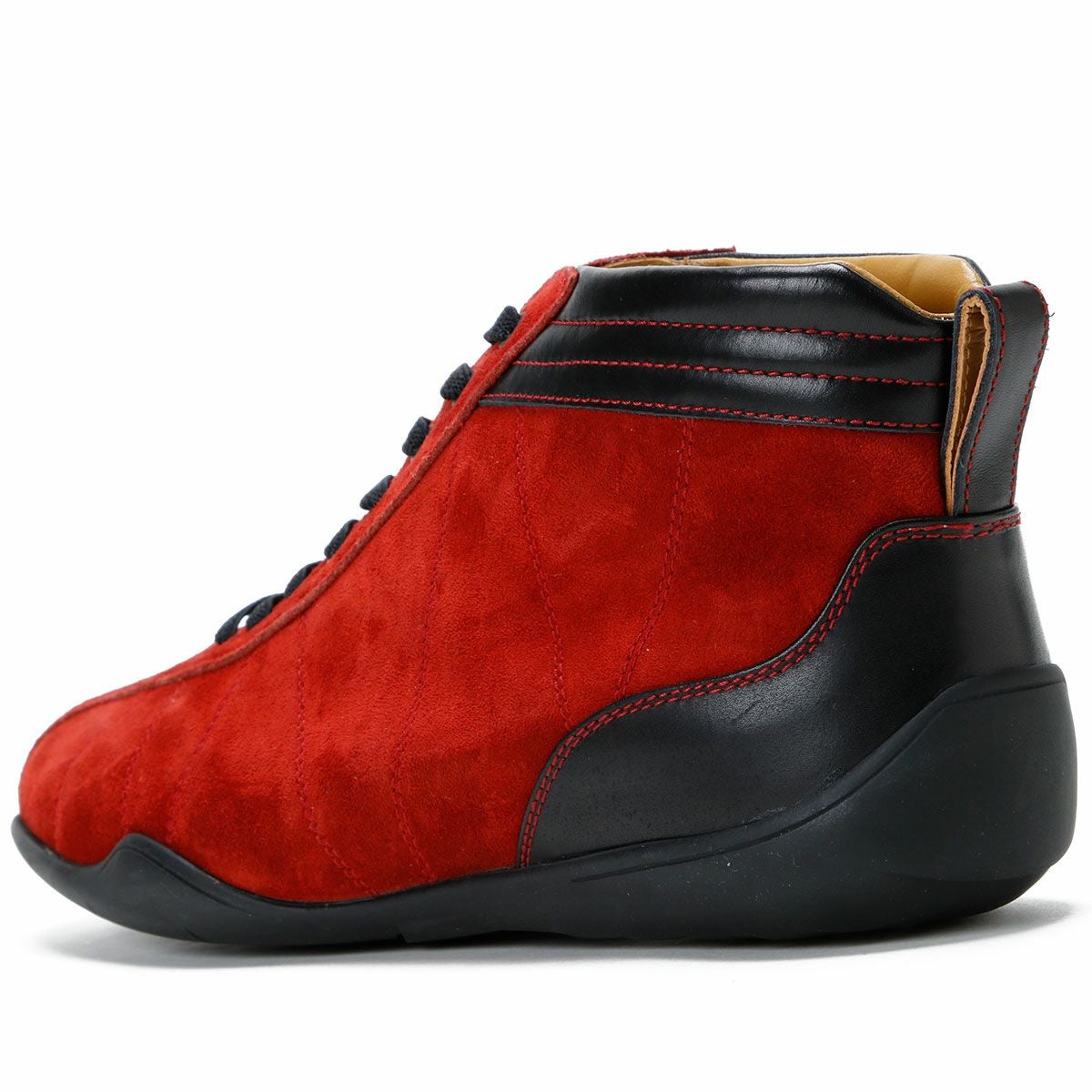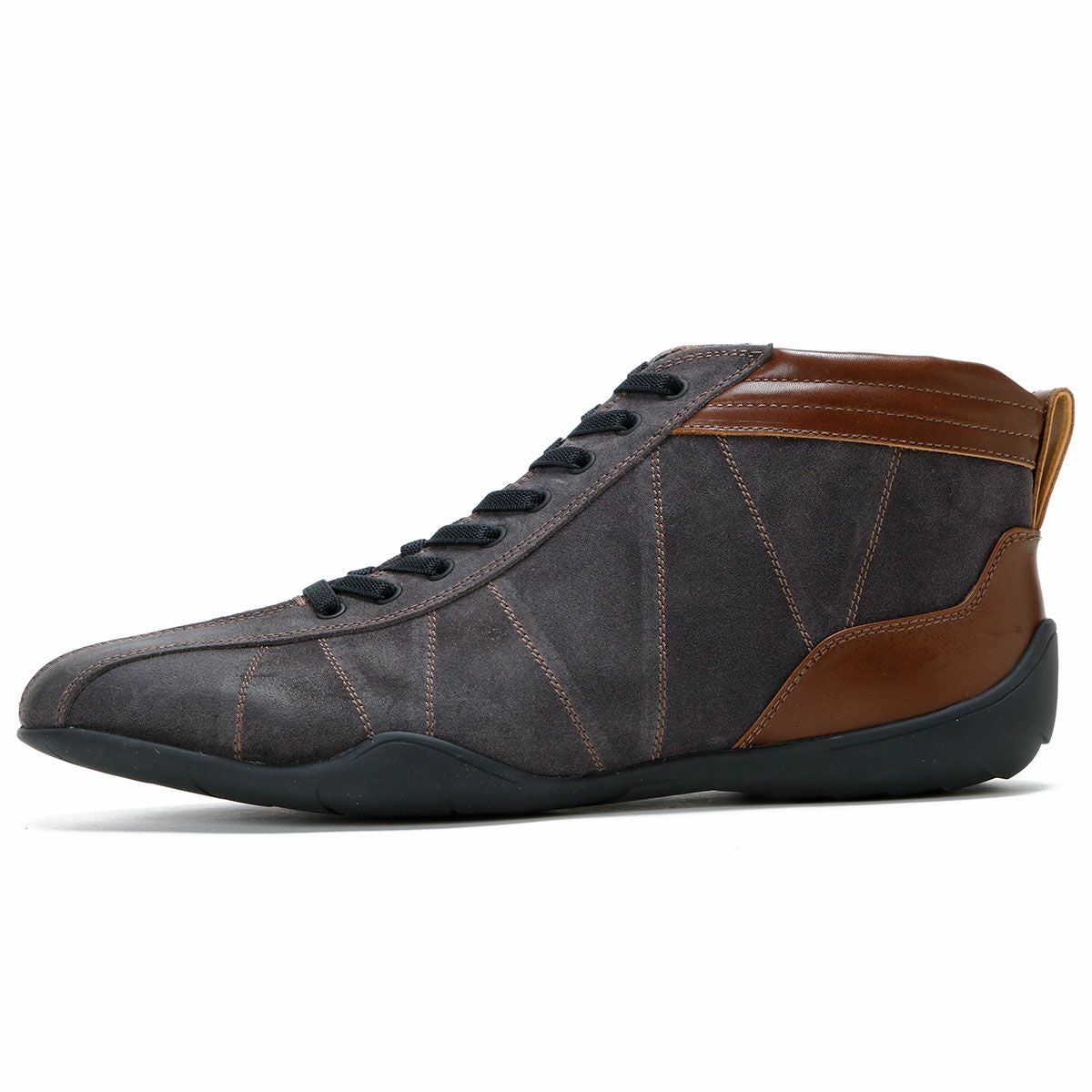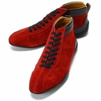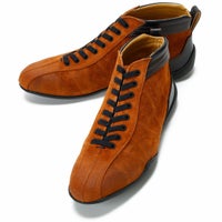 GRAND PRIX HI-TOP / グランプリハイトップは、ネグローニが敬愛する60年代から70年代初頭にかけてのレーシングスタイルから影響を受けたモデルです。イギリスの古書店、古写真店、蚤の市などで60’s~70’sに撮影されたレーサーの足元を撮影した写真や当時の広告物を数年に渡りリサーチし、当時のデザインムードに現代的な機能をミックスしたハイトップ・スニーカーに仕上げました。アッパーにはムラのある男らしいグラデーションが特徴のオイルバーニッシュスエードと、コントラストを効かせたウェットトラックカーフ。スエードの表面に染み込んだオイルが、独特のエフェクトを表現しています。また、ライニングにはエイジングを楽しめるモーターハイド・ヴィンテージを取り入れ、より贅沢なフィット感を演出しています。ネグローニが表現するクラシックモータースポーツの世界観を是非お楽しみください。