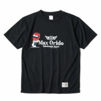 胸元にMAX ORIDOのロゴと自身のマスコットがプリントされ、背中には「THE CHASE DREAMS CLUB」というテーマで、自身の愛車でもある赤い80スープラなどポップ調で描かれており、モータースポーツやドリフト、走り屋の世界を積極的に盛り上げている織戸学推しに捧げるファンTシャツです。