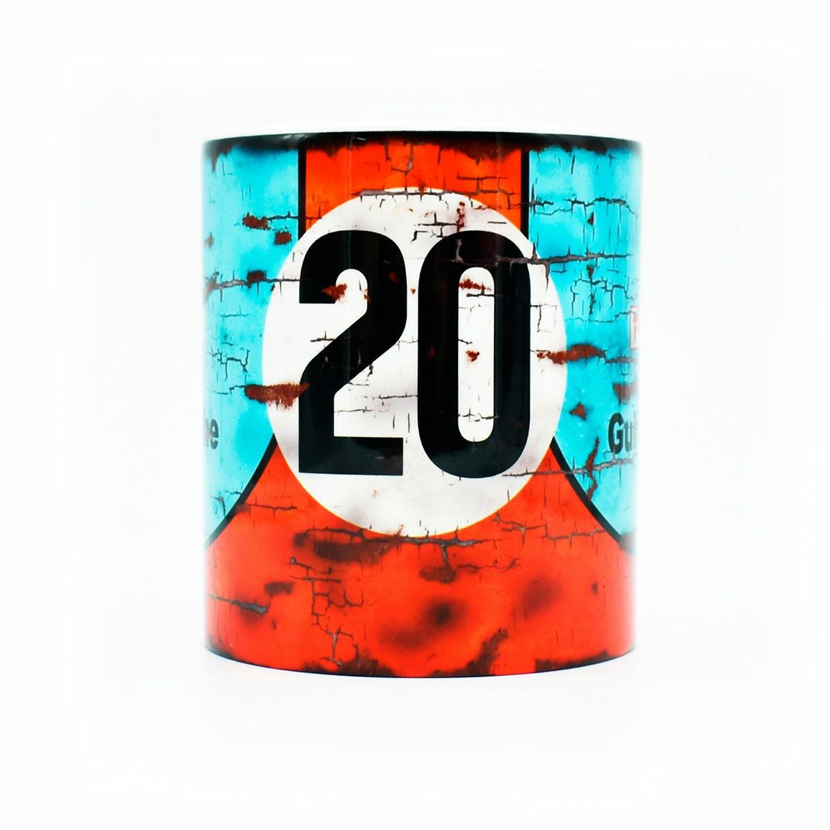 マグカップ全体に、当時の主要スポンサーロゴと汚し加工が施されており、スティーブ・マックィーン演じるマイケル・ディレイニーのシーンが蘇るようなデザインに仕上がっています。