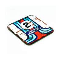 マルティニカラーのポルシェ917のマシンカラーをモチーフにしたコースター。