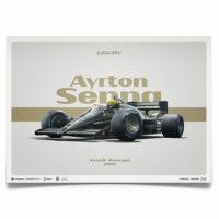 アイルトン・セナが記念すべきF1初勝利を挙げた、1985年ポルトガルGPのロータス ルノー 97Tを最新の3D技術を駆使して描かれたグラフィカルポスター。