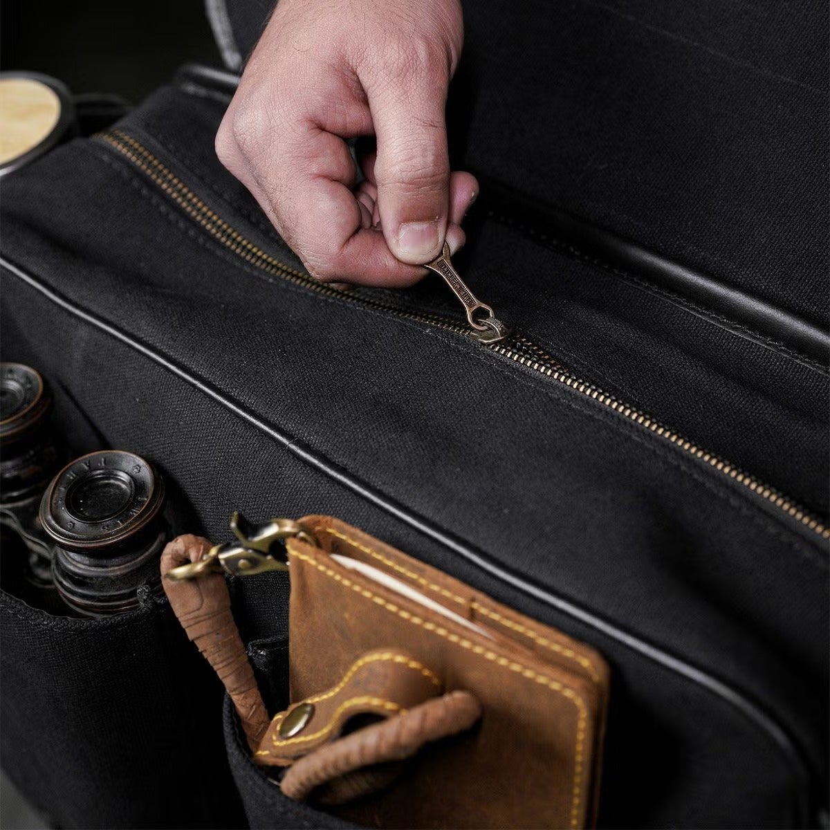 16オンスの重厚なキャンバスと上質なレザーを使用しており、耐久性に優れ、過酷な使用にも耐えるタフな作りのサドルバッグの【片側シングル】です。