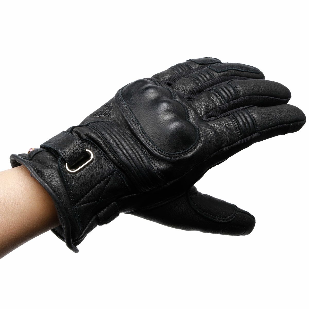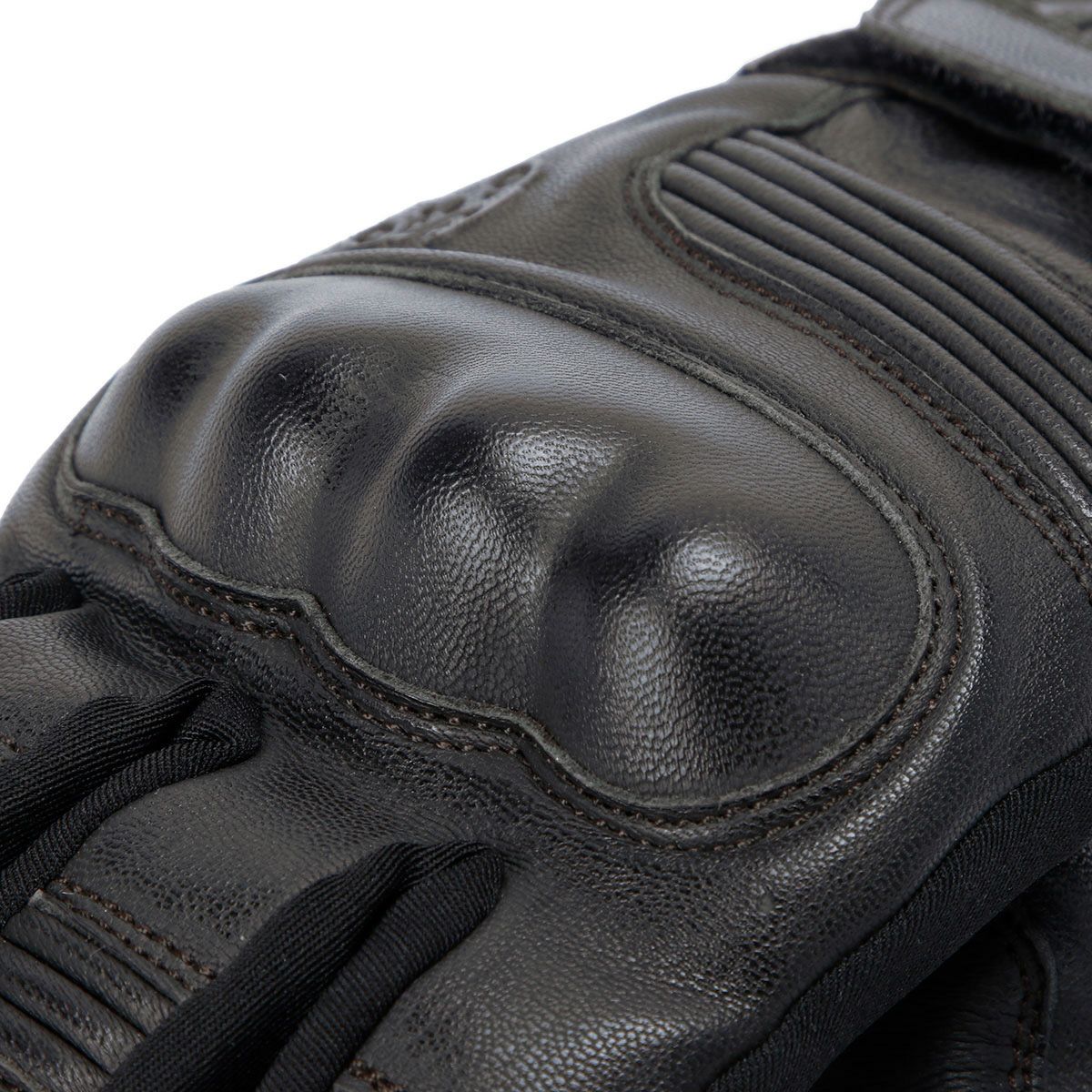 ナックル部には硬質のカーボンシェルを配し、手のひら内部は強靭なケブラー繊維で補強。
