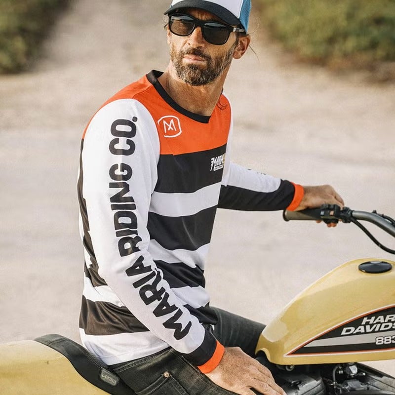 昔ながらのオフロードライダーをインスパイアしたヴィンテージデザインのダートトラックジャージ。