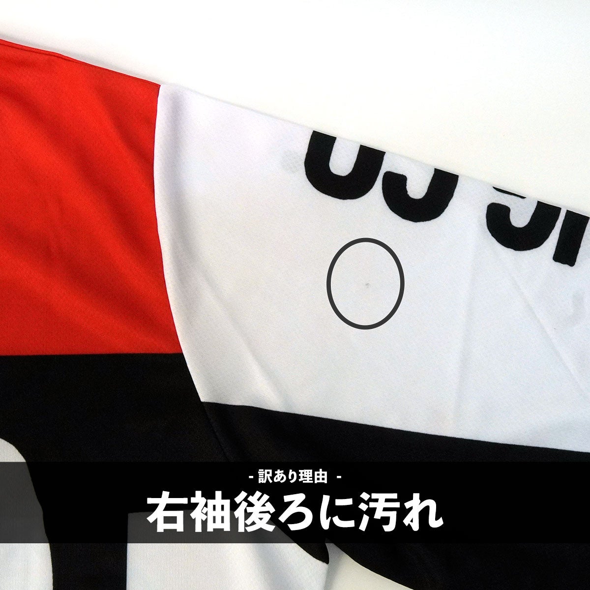 ホワイト、ブラック、レッドの色使いを基調に、背中の大きな10のゼッケン、袖のカンパニーネームのプリントが目を惹くオシャレな一着。
